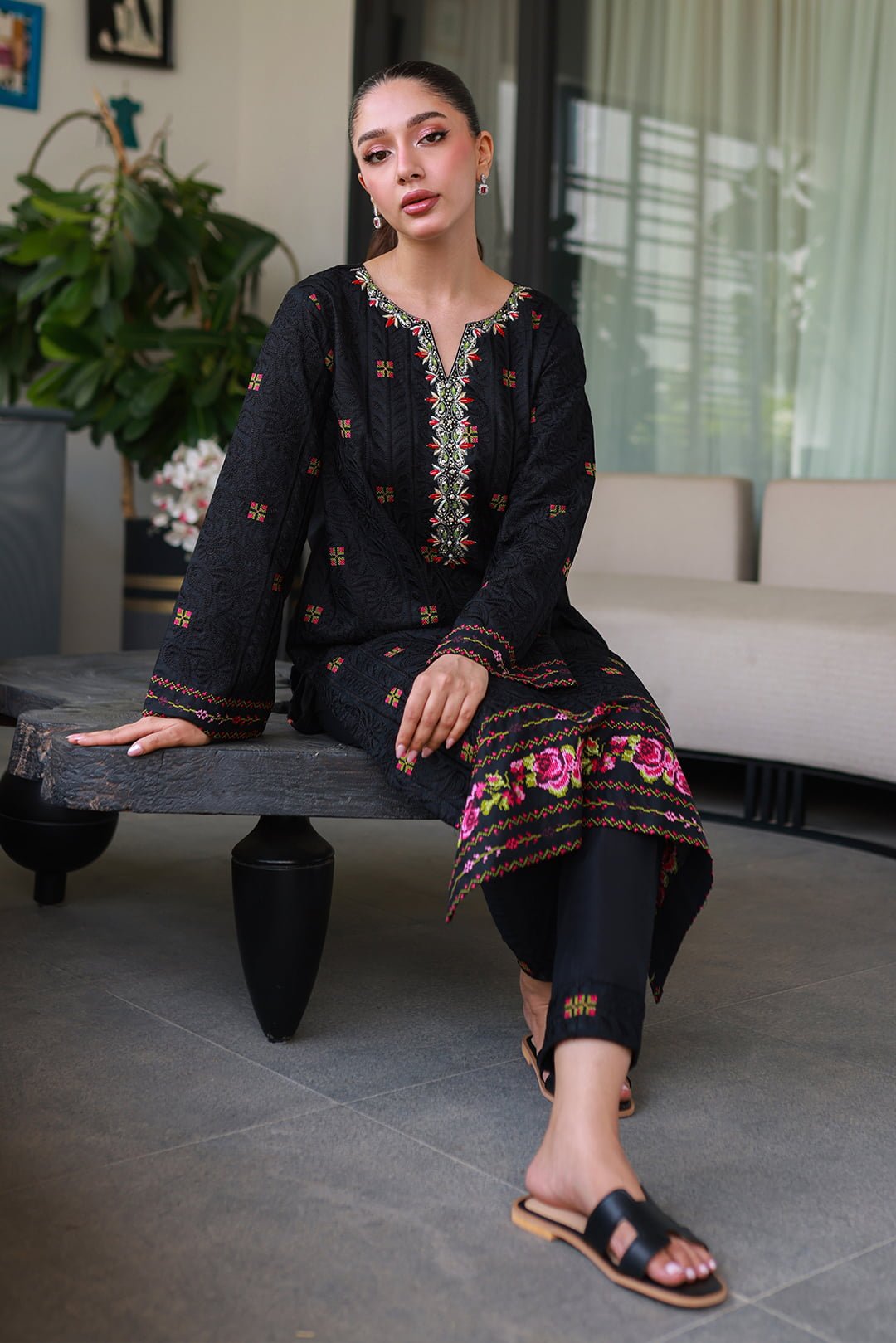 This chic ensemble features a cotton shirt and trousers, beautifully
